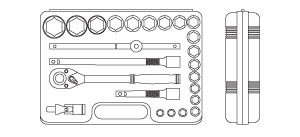 | 75- ECT024 | Socket (6pt) | 8, 10, 11, 12, 13, 14, 15, 16, 17, 18, 19, 20, 21, 22, 23, 24, 27, 30, 32mm |