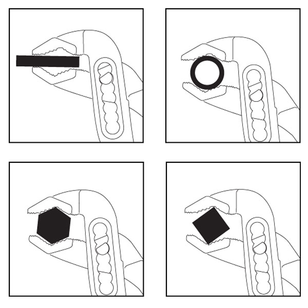 For gripping irregularly shaped objects, clamping materials and for turning and holding nuts and bolts