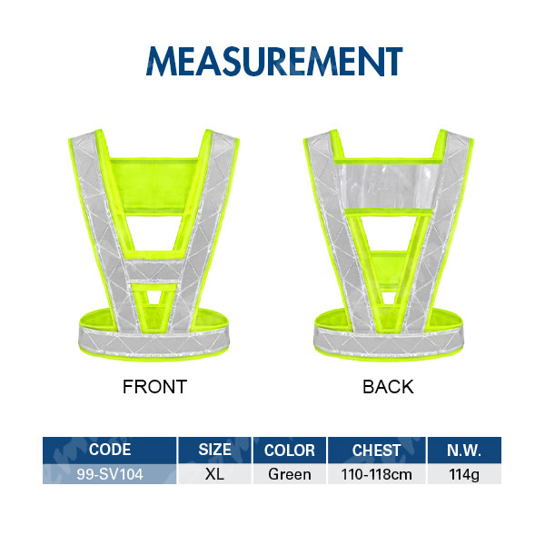 | 99-SV104 | XL | Green | 110 – 118 | 114 | 100 |