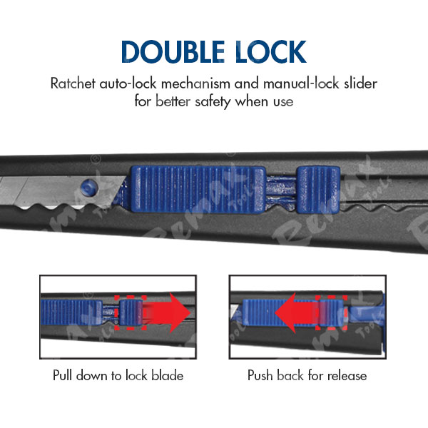 With safety blade lock slider design